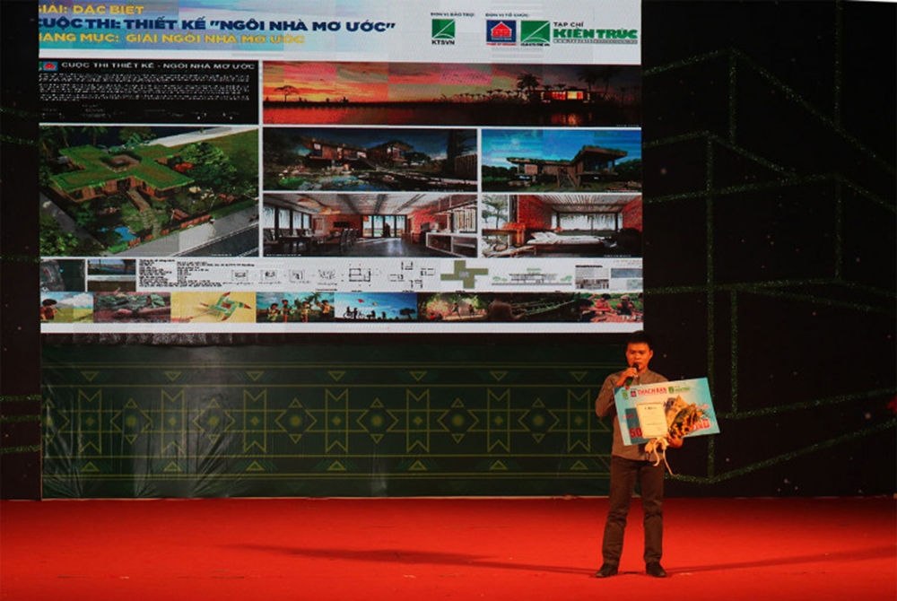 Architect Ho Khue at the award ceremony shared a small story about the design of the award-winning project. Besides, he showed his sympathy with the pain of the people in Thanh Hoa, Quang Nam who suffered from severe floods and decided to donate his prize to the people.