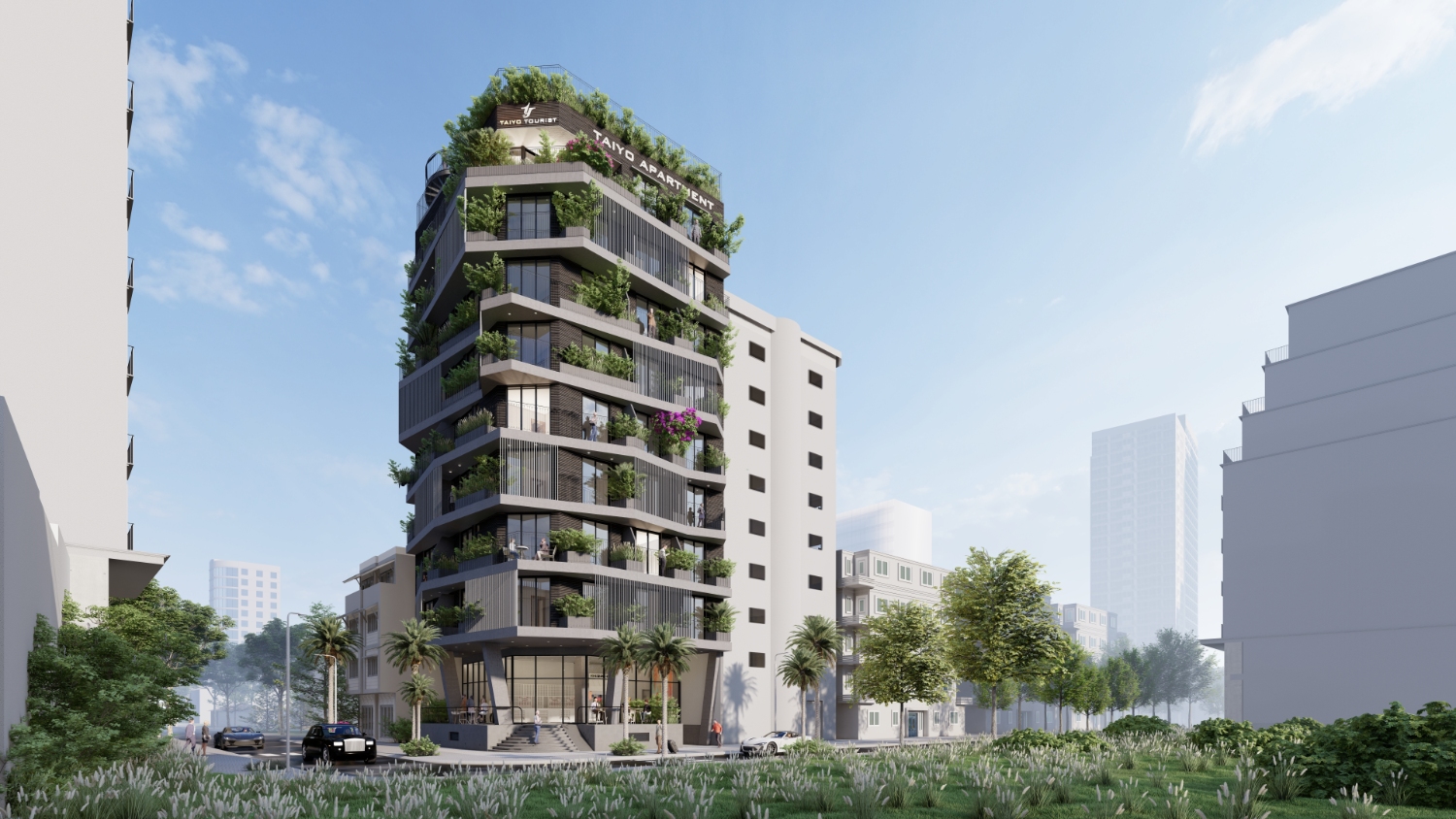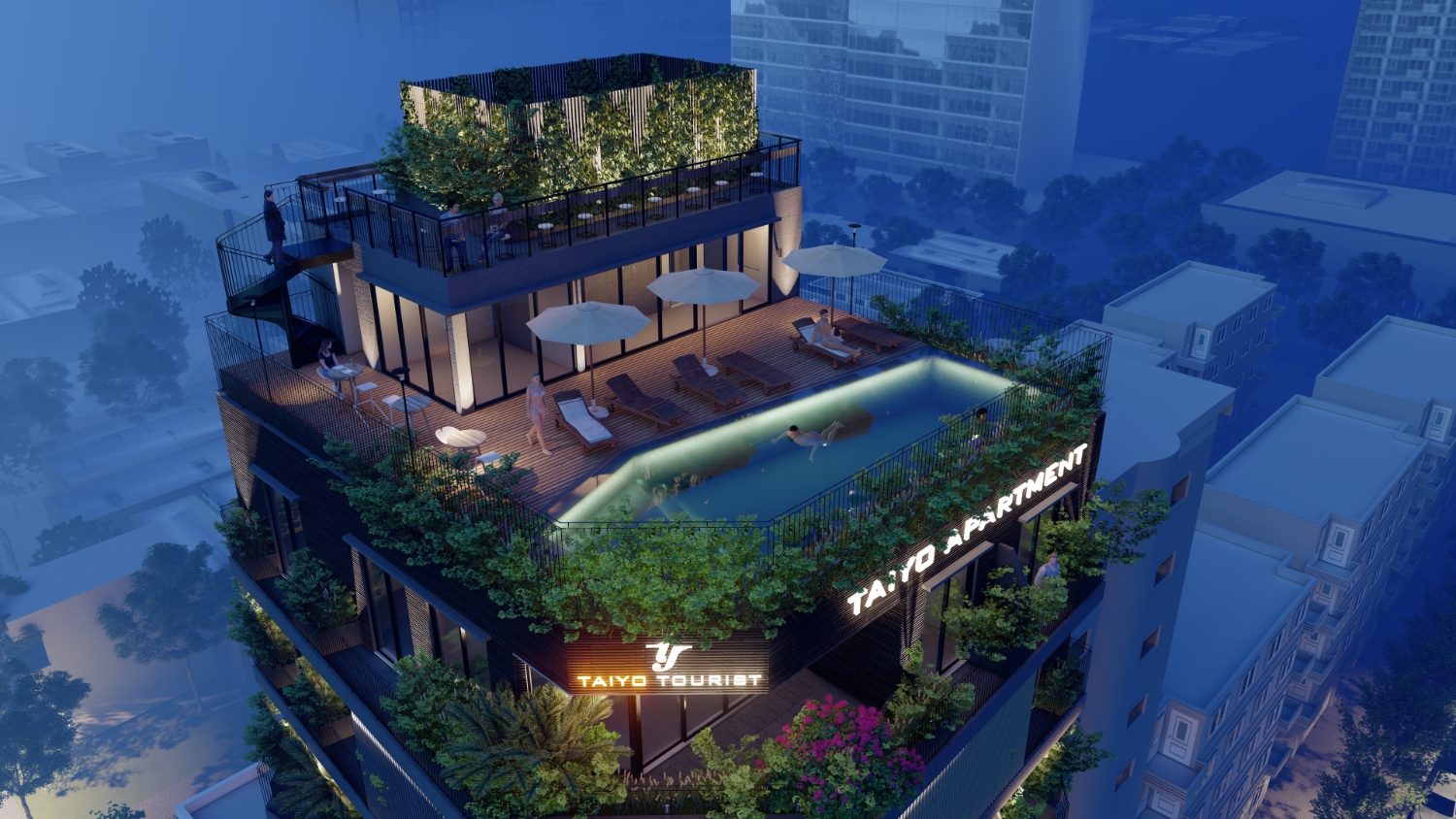 Taiyo Apartment of Taiyo Tourist Group is a 10-storey service apartment project, designed architecturally and interiors by Ho Khue Architects (ALPES) and constructed by Trieu Tien Company.