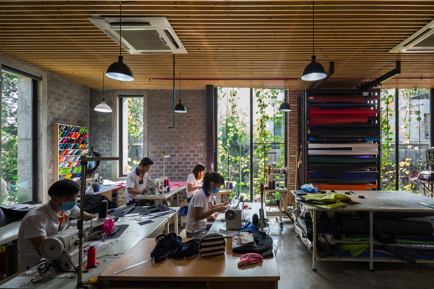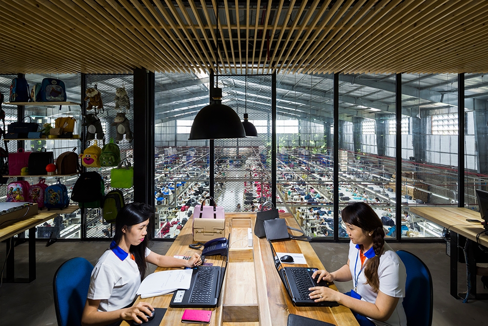 This work was designed by Ho Khue Architects with a new concept to reduce the pressure of workers in the workshop. It instills a sense of fairness and accessibility to the board of directors and management for the factory workers. As predicted this workspace changed the dynamics of the company by extending visibility throughout, not dividing and separating with partition walls or closed rooms. Department managers and workers now see and freely interact with each other, eliminating the worker’s feeling of work being always exploitative and unfair. This increases productivity.