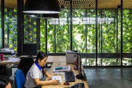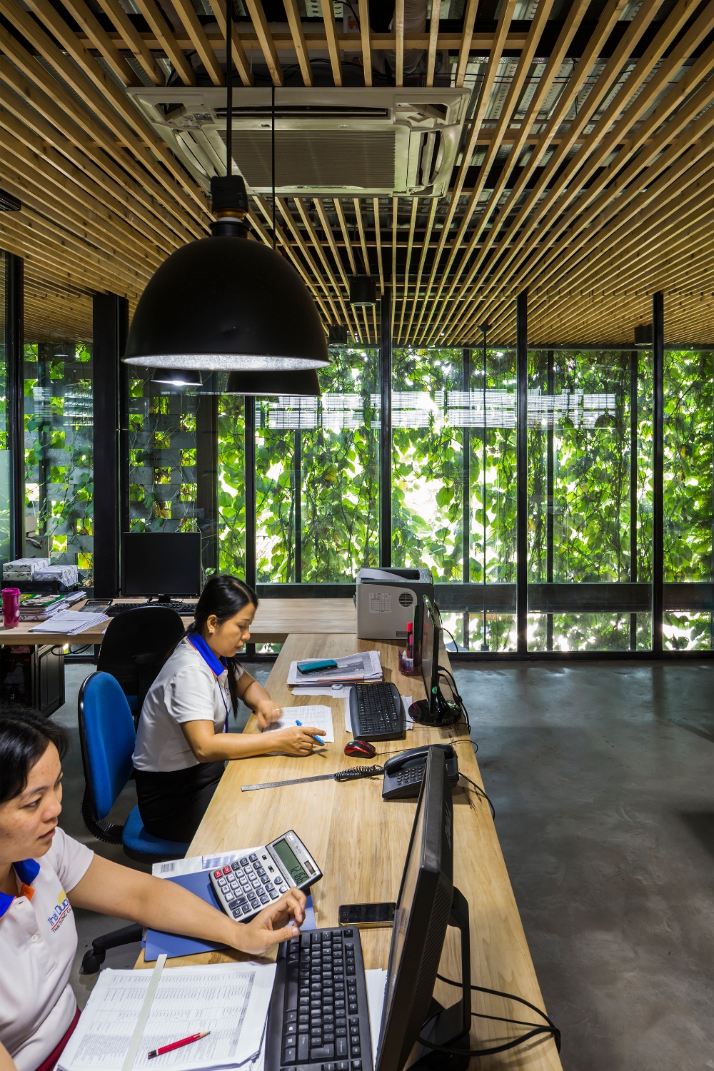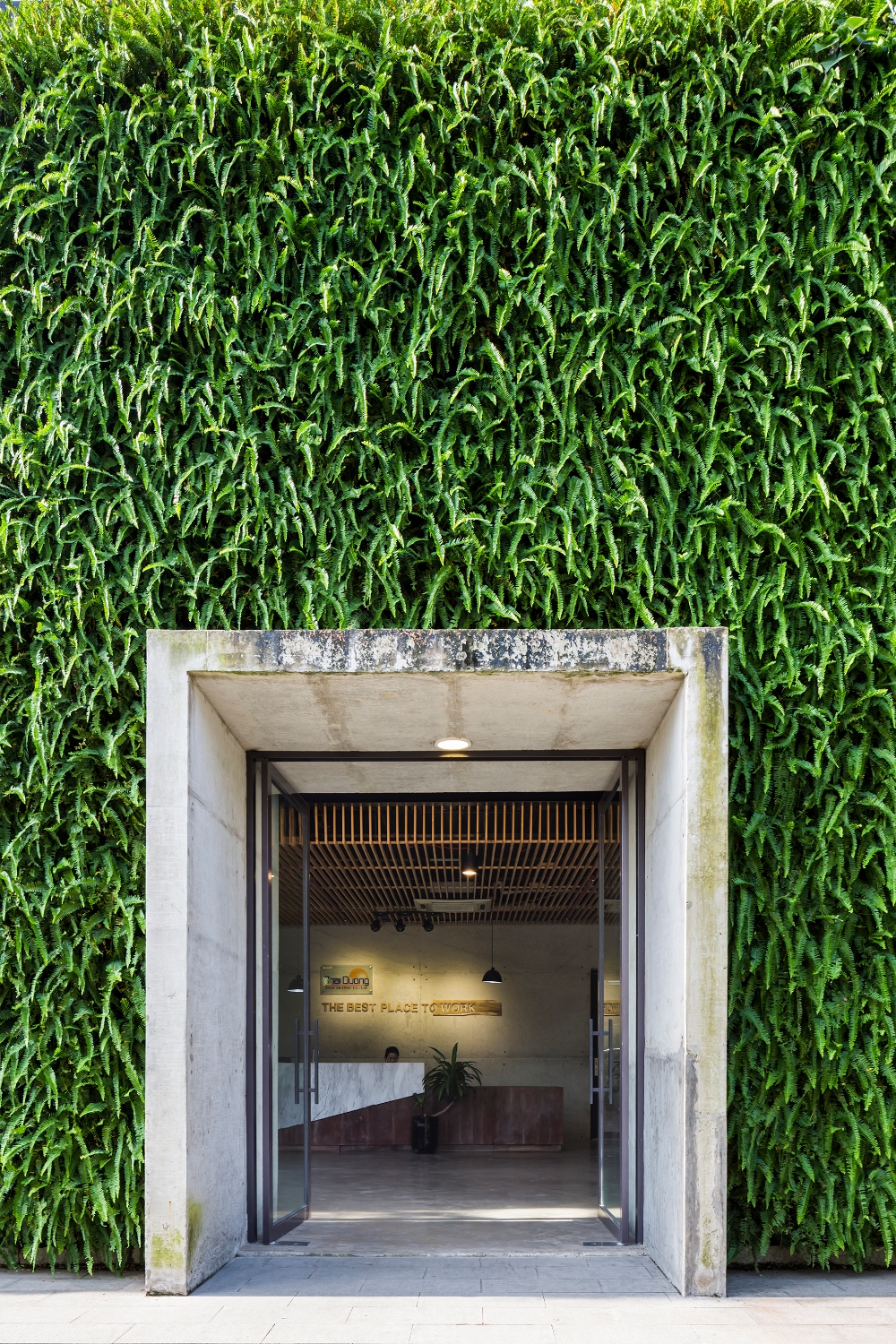 The previous condition of the siteThe building was renovated from an old factory, abandoned and not used for a long time. The owner of Thai Duong Company requested to renovate this old factory into an ideal workplace for employees with naturally cool temperatures, a natural green space surrounded by many green trees and plantings. The open design accommodated office blocks for working design groups that allowed freedom of movement and sight to promote teamwork. This light and naturally cooled green space promote high-quality work.