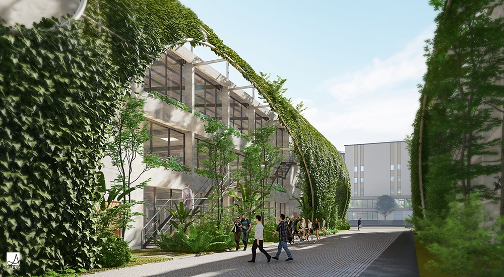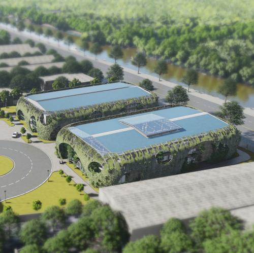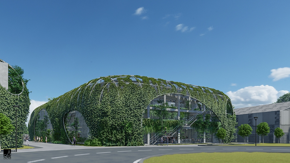 The inspiration for the design idea came from the company’s name “Green Planet”. The construction is a three-storey building block with a total floor area of more than 6,000 m2, covered by a green arc frame, creating a green building in an industrial park that is usually monotonous, dry, and hard.