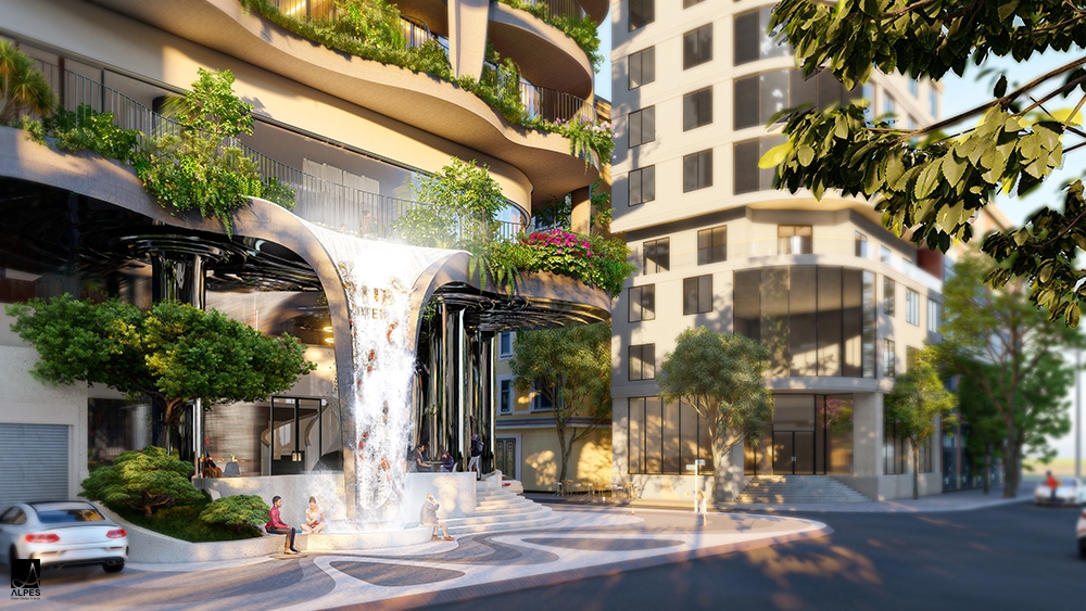 The architectural essence of ELLIE HOTEL is inspired by cascading waterfalls amidst lush forests. This inspiration has given the building a unique, green architecture, reflecting the developer's philosophy of 'Making you wow.' The staggered waterfalls on each floor, gracefully following the stylized balcony lines, create an eye-catching and memorable exterior. The strategic placement of greenery ensures that every room offers a refreshing green view, maximizing the guest experience.