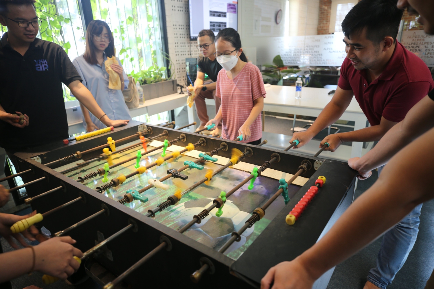 In addition to the moments of immersing yourself with inspiration, ALPES team also takes time to refresh and enhance teamwork through exciting office sports activities. The first tournament was successfully held under the light of the company's birthday with the two games of Foosball and Darting which received a warm response from all employees.