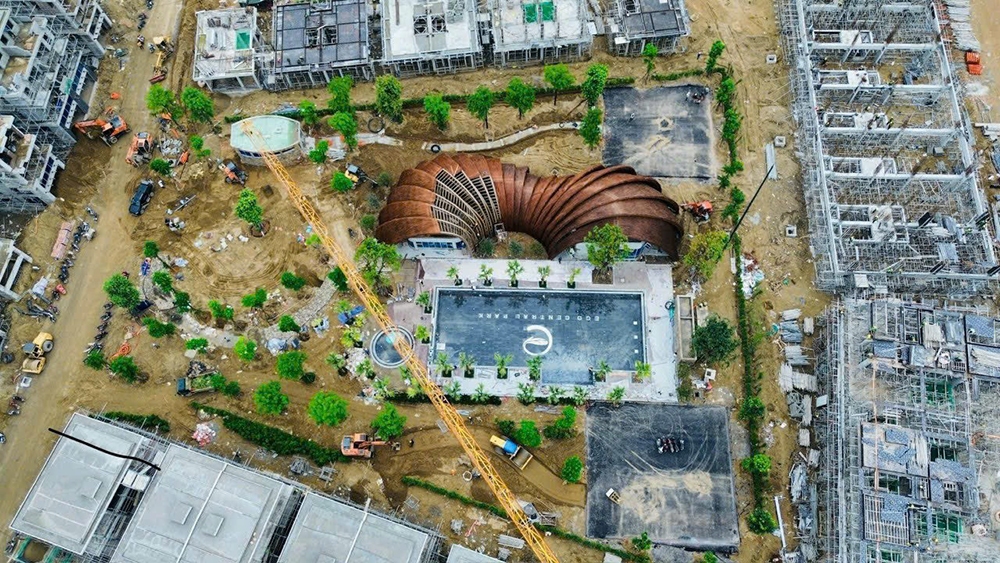 Following the grand groundbreaking ceremony of the Eco Central Park project, the Clubhouse component has been swiftly initiated. Inspired by the majestic natural curves of the mountains and rivers of the Sông Lam region, the Clubhouse's standout feature lies in its sculptural framework combined with a nature-inspired thatched roof. This design creates an impressive and distinctive appearance. Once completed, the Clubhouse is expected to provide Eco Central Park with a world-class relaxation and entertainment space, enhancing its appeal and charm.