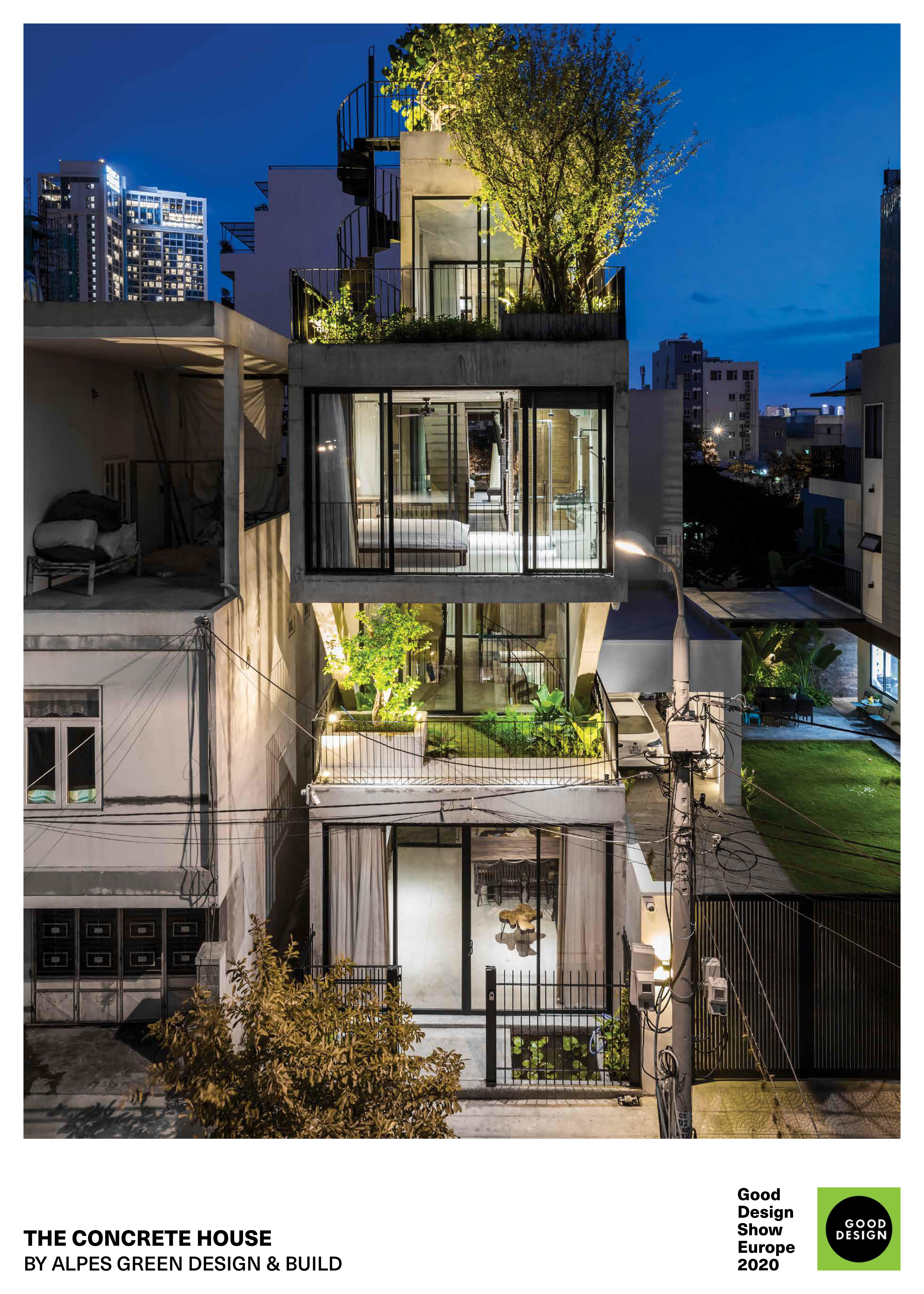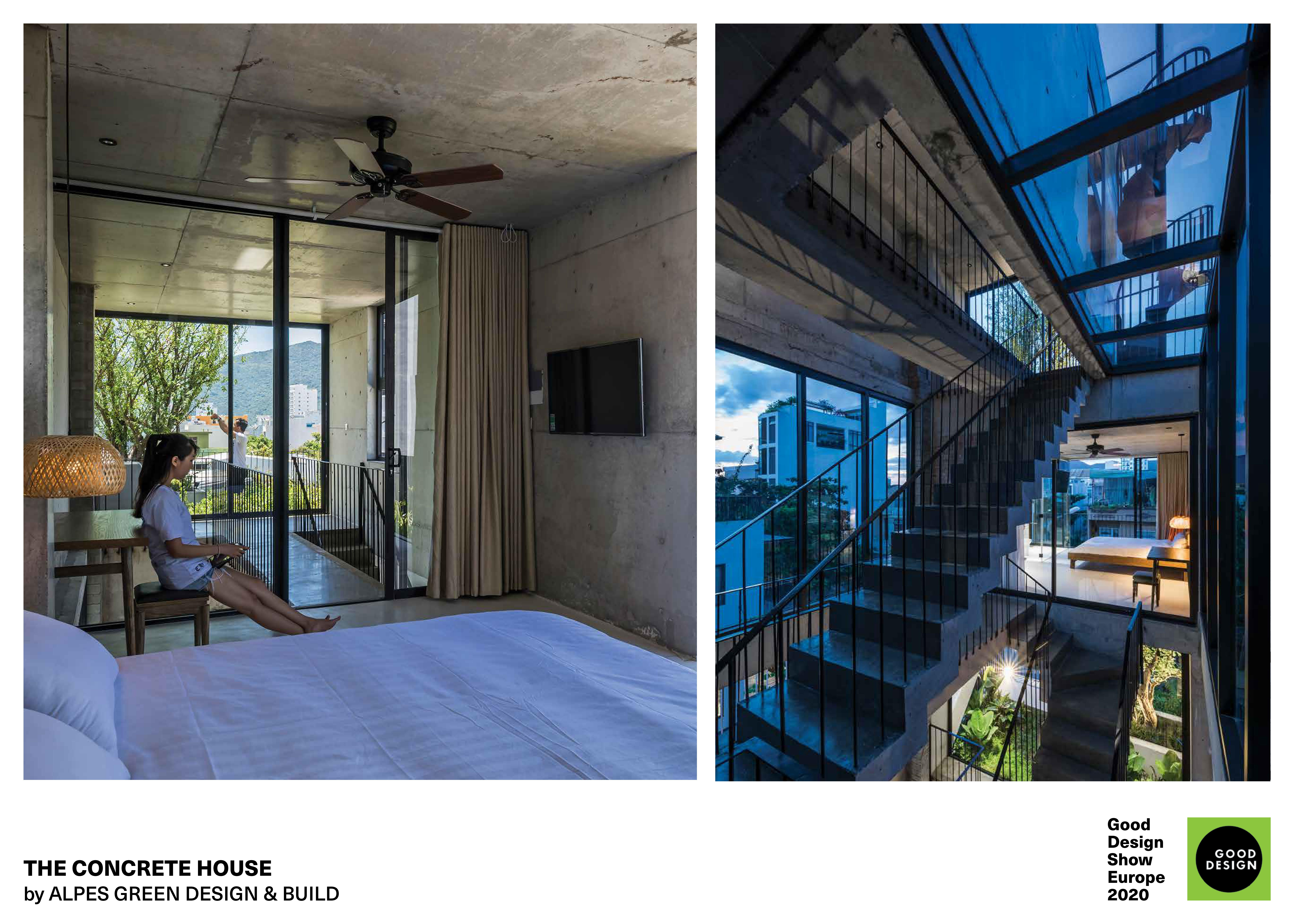 The Concrete House is a 4-storey house with a plot area of 5m x 16m. The site is located in Son Tra near Da Nang beach. Growing tourism in the city has enabled the growth of hospitality high-rises which has led to low-density structures deteriorating faster than regional structures. These changes are creating topographical changes creating imbalanced soil and high salinity levels in air and land. Therefore, a complete concrete solution for the house is considered to cope with the regional climatic conditions.