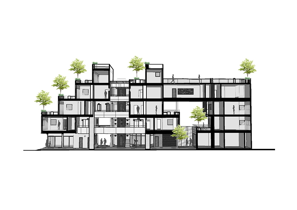 In Vietnam, urban areas are zoned in zoning plan for land-use with residential areas with narrow yet long plots, only 1-2 face connected to the main road. Hence, front of the building is the only source of natural light and ventilation. With the pollution levels rising in the city it is becoming difficult day by day to build sustainability. People in urban areas feel separated from nature and interact with each other. There is a lack of social interaction and connectivity between people. To create an urban building that contributes to bringing people back to nature and people is an architect's challenge.