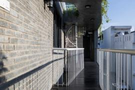 The site has a width of 6m with connecting to road only from the front. The width of the site is about 40m, with irregular sides across the length. The client requested to design the project with the function of a service apartment with 10 rooms within 5 floors. The special features of the project are to be unique, prominent and in harmony with green trees within the building to create business efficiency, user experience and connect with the community.