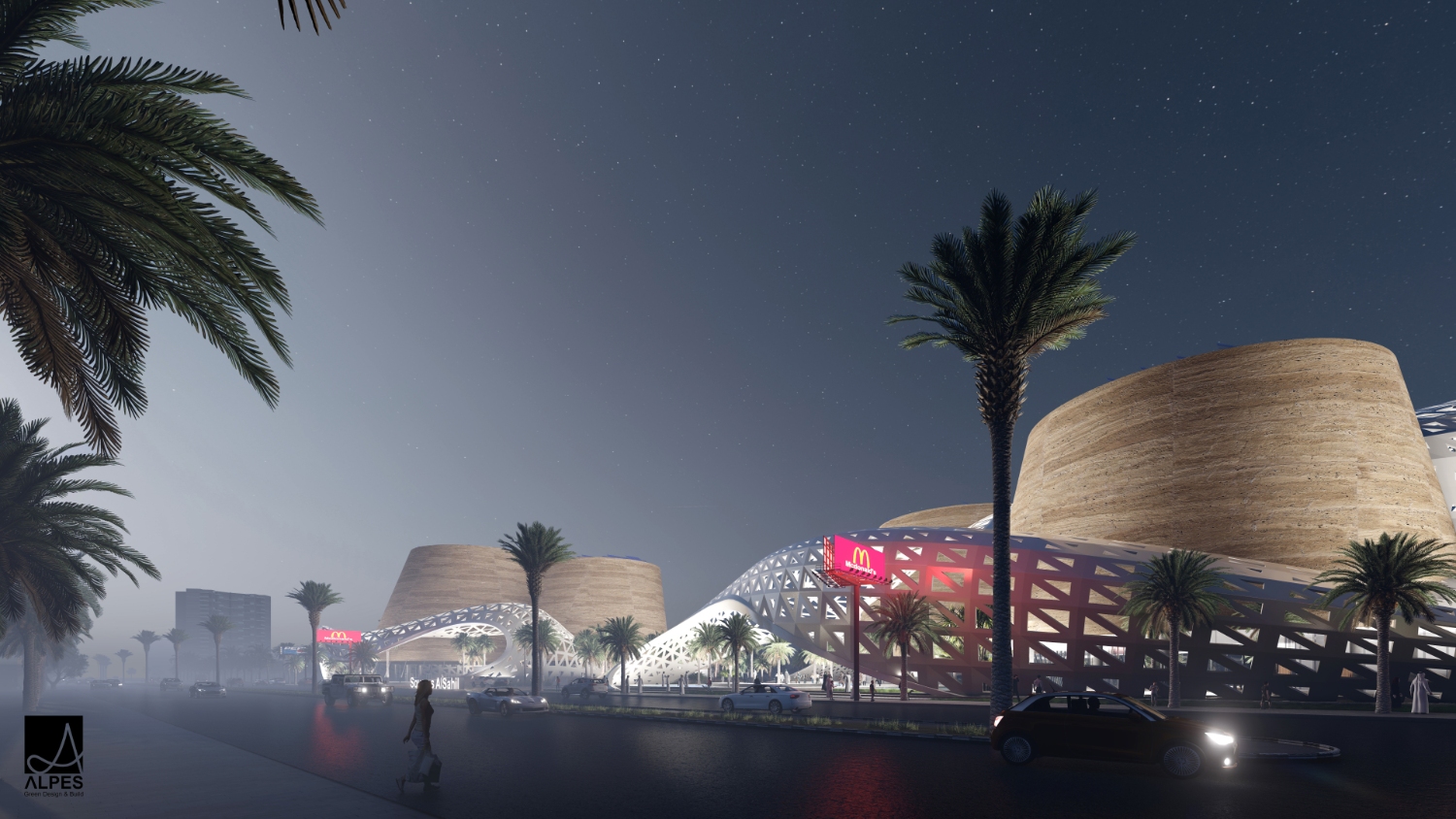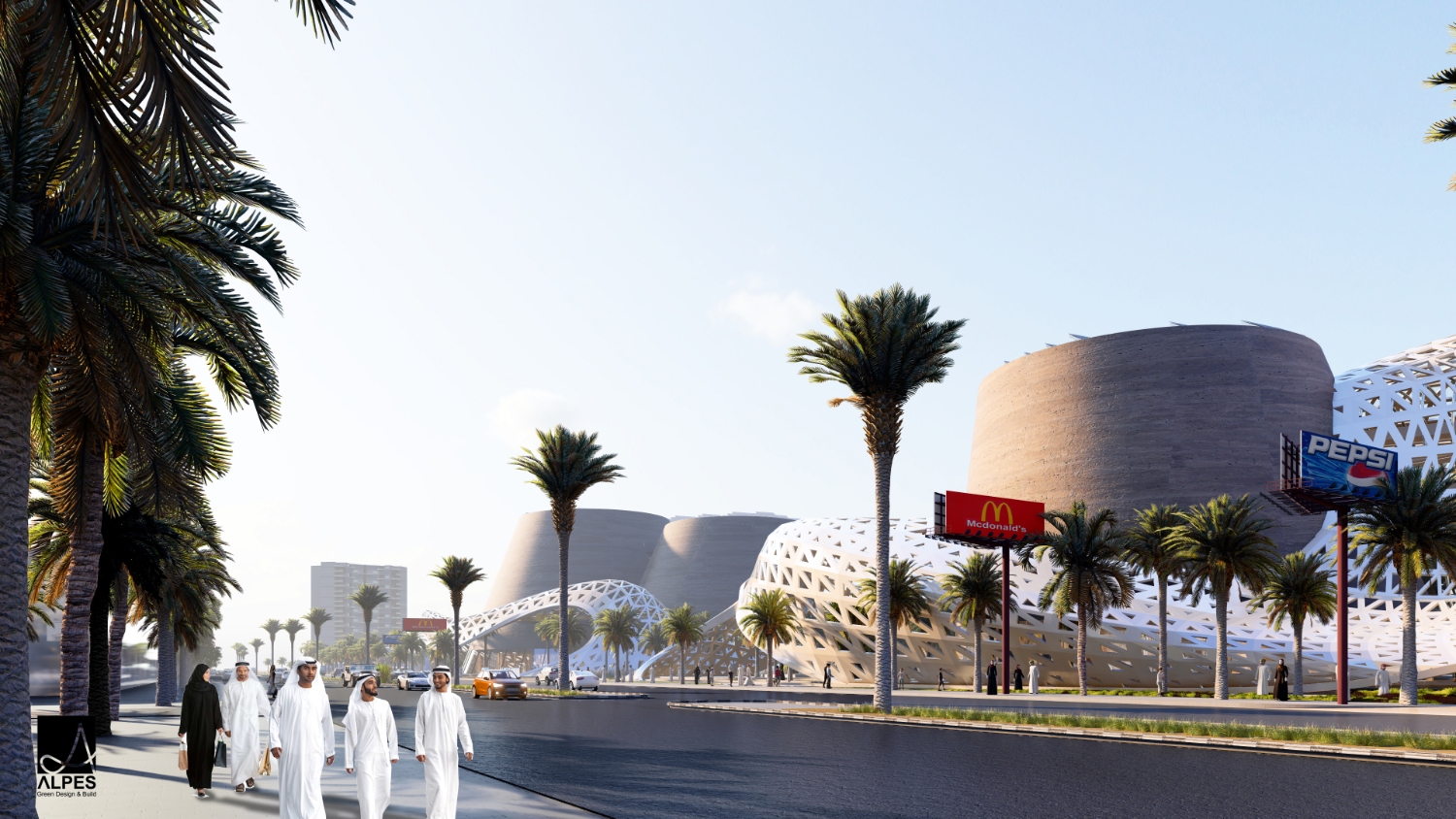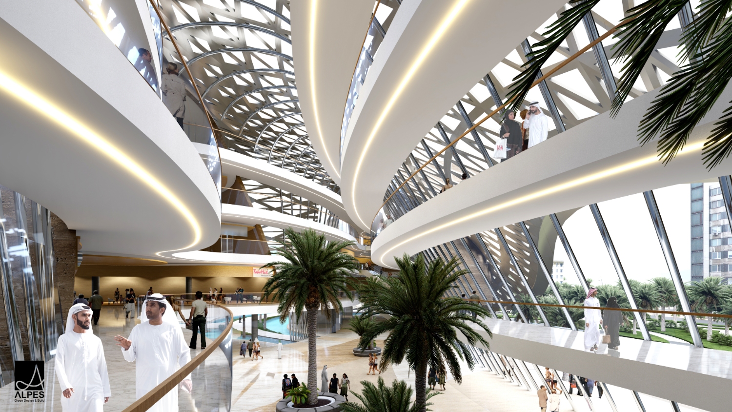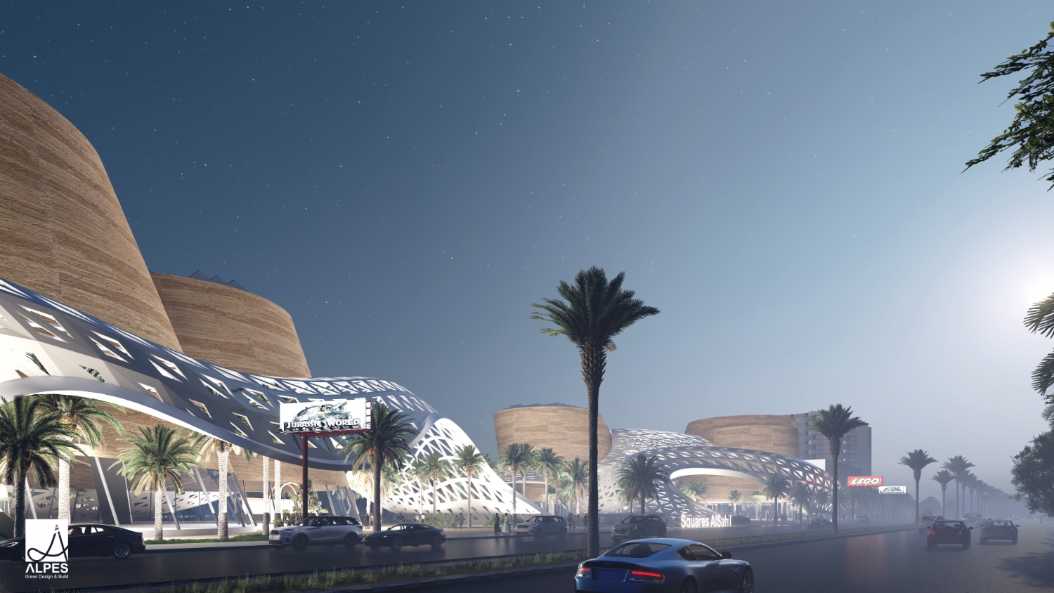 Công trình là một tổ hợp gồm 5 khối tháp hình tròn, tích hợp đầy đủ các công năng hiện đại của một trung tâm giải trí cùng khu vực ngoài trời với cảnh quan sống động, thu hút. Các khối công trình chính được kết nối với nhau bằng một lớp vỏ mái nhẹ rỗng bằng hợp kim, uốn lượn bao quanh công trình như những đồi cát sa mạc vùng Tây Á. Lớp vỏ bao che này góp phần tạo nên hình ảnh kiến trúc đô thị ấn tượng cho khu vực.