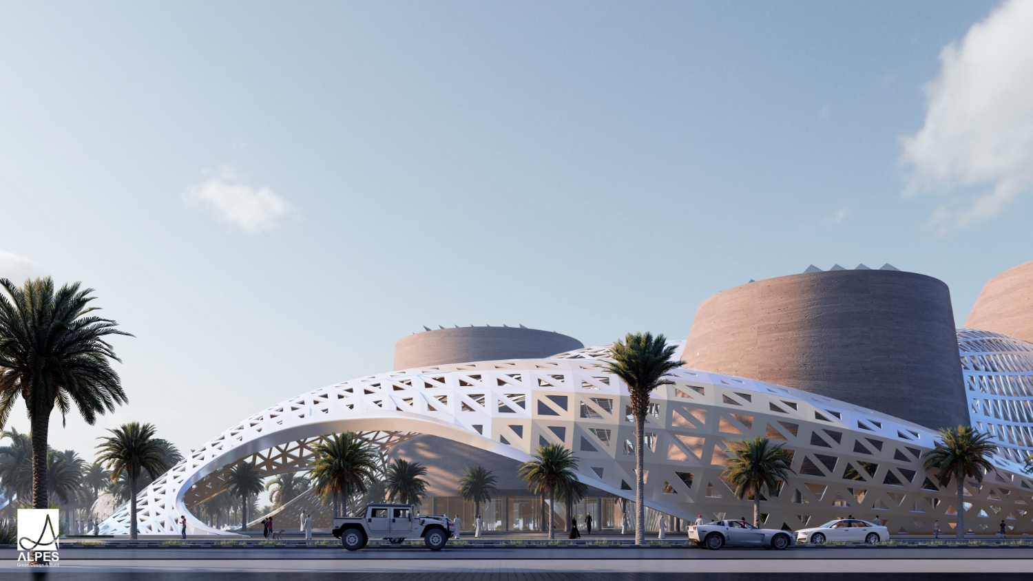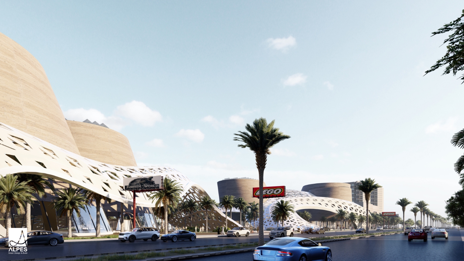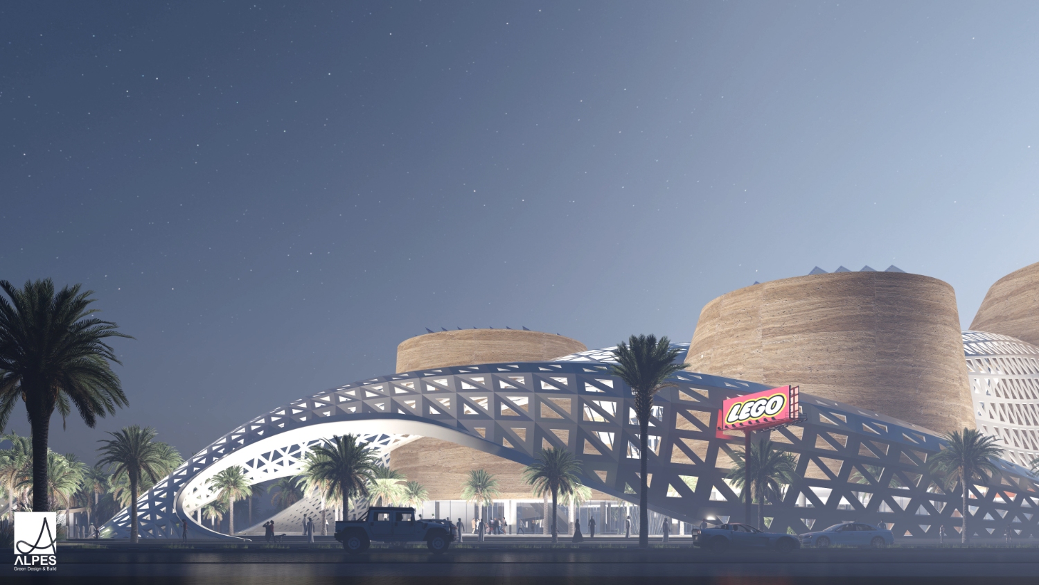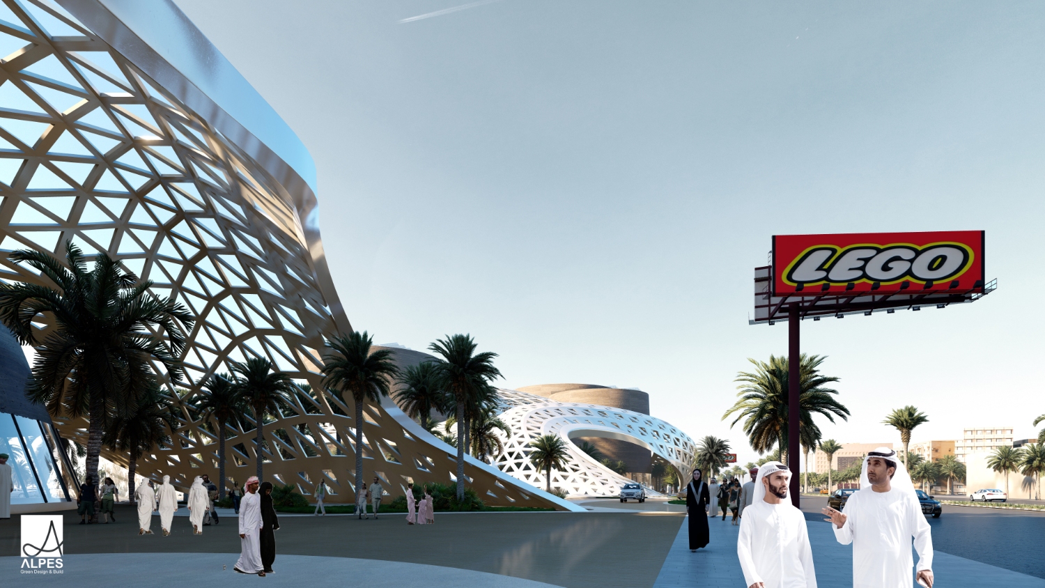 Công trình là một tổ hợp gồm 5 khối tháp hình tròn, tích hợp đầy đủ các công năng hiện đại của một trung tâm giải trí cùng khu vực ngoài trời với cảnh quan sống động, thu hút. Các khối công trình chính được kết nối với nhau bằng một lớp vỏ mái nhẹ rỗng bằng hợp kim, uốn lượn bao quanh công trình như những đồi cát sa mạc vùng Tây Á. Lớp vỏ bao che này góp phần tạo nên hình ảnh kiến trúc đô thị ấn tượng cho khu vực.