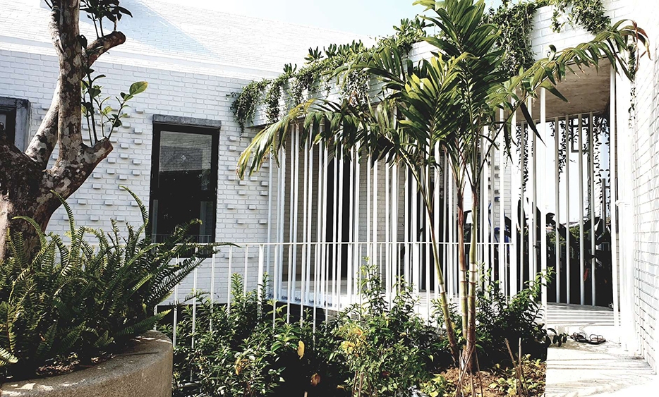 Góc nhìn về hành lang thiên nhiên nối giữa hai khối nhà